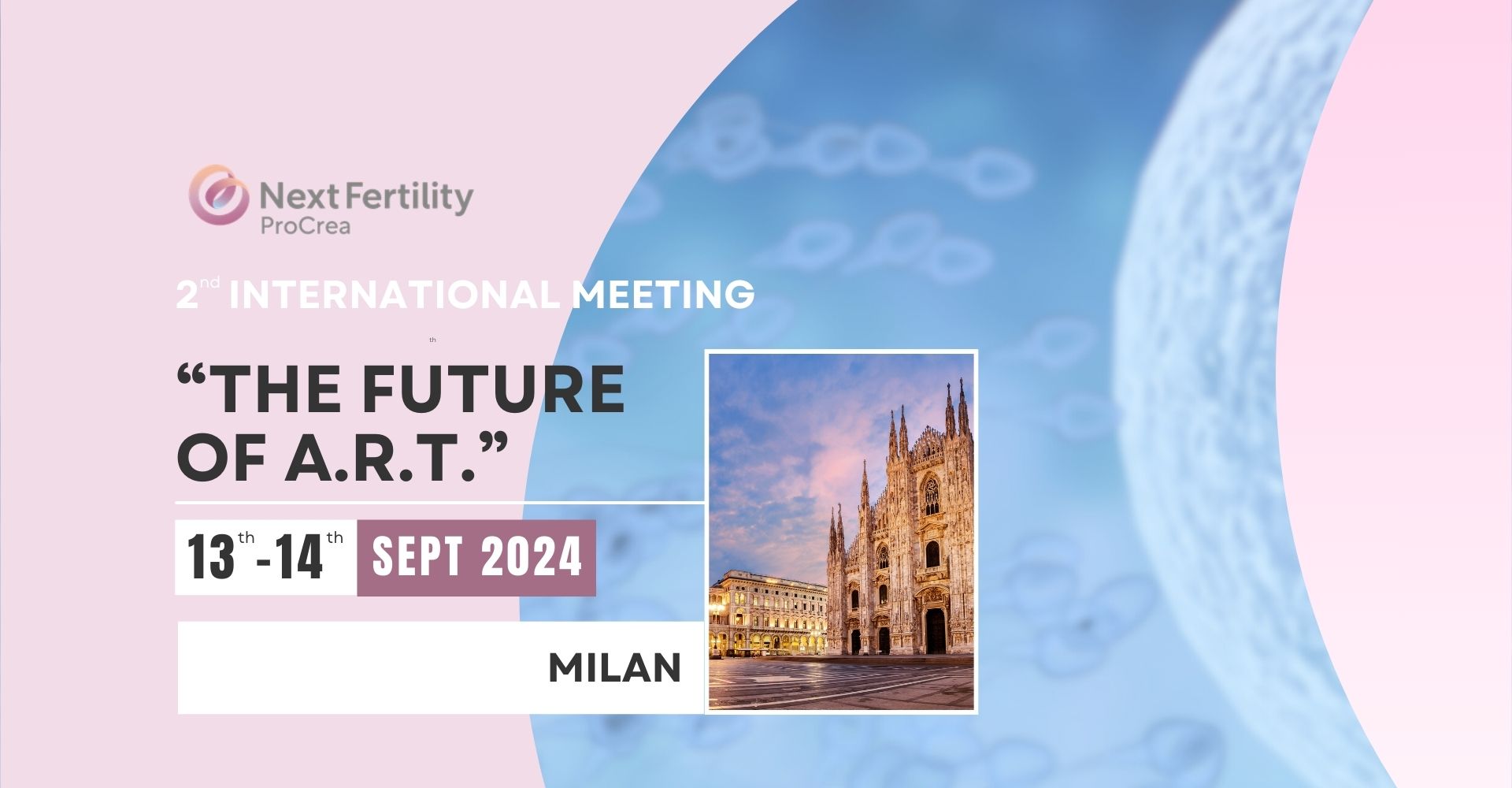 Next Fertility ProCrea2nd INTERNATIONAL MEETING“THE FUTURE OF A.R.T.”Milan, Italy - 13 -14 September 2024Hotel NH Collection Milano CityLifeVAI AL SITO DEDICATO Indietro Avanti